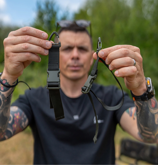 Effortlessly keep your gear organised and dry with the Retainer Sling Straps. Designed to securely attach to the rings on your barrow’s main frame, these durable straps allow you to carry wet nets, slings, and retainers below the base of the barrow, ensuring any drips go straight to the ground rather than your other kit. Perfectly suited for weigh slings, landing nets, all while keeping the main load area free for other essentials.