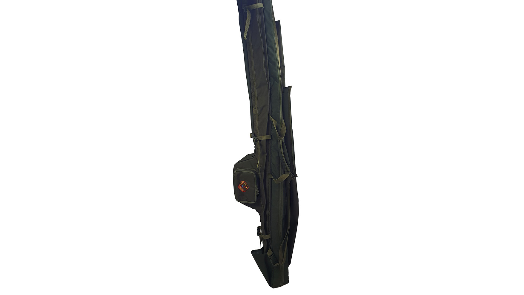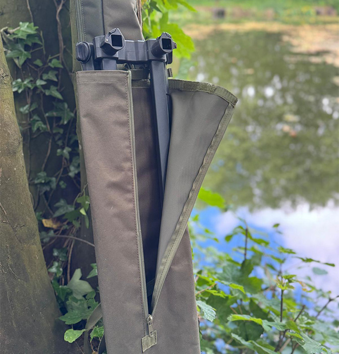 Externally there is a large part zipped access pocket to house a river tripod of the Korum type that can also be velcro sealed should bank sticks be preferred together with space to hold a triangular landing net if required or one of our Specialist Floater Slings. A landing net pole can be housed in its own separate pocket, also keeping the holdall straight to assist when loading the rods. There is a cupped pocket and adjustable straps for carrying a brolly of third rod.