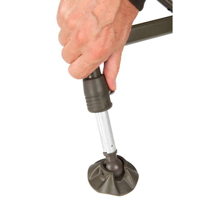 • Six extendable legs with swiveling mud feet for uneven ground.